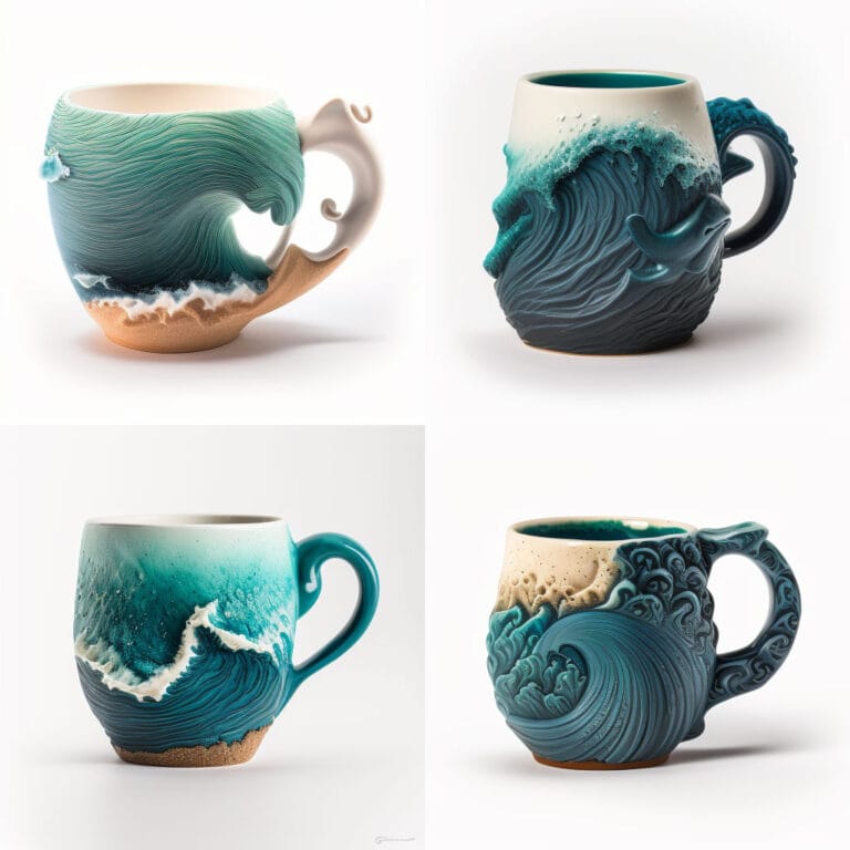 Diseño de tazas con inspiración marina, desiertos y flamencos
